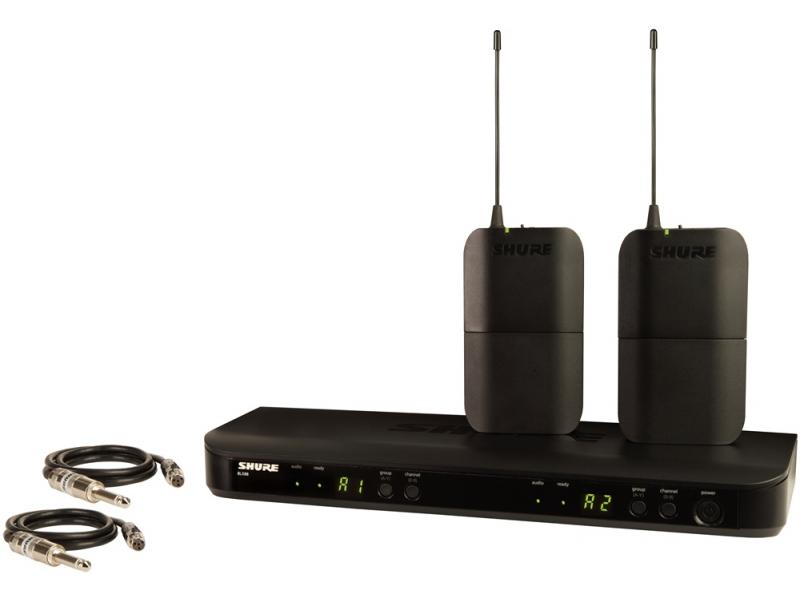 2-канальный радиоприемник BLX88 с 2-я инструментальными кабелями 1/4" - TA4F, оперируемые частоты: 524-865 МГц, радиус действия до 91 м, время работы до 14 ч.