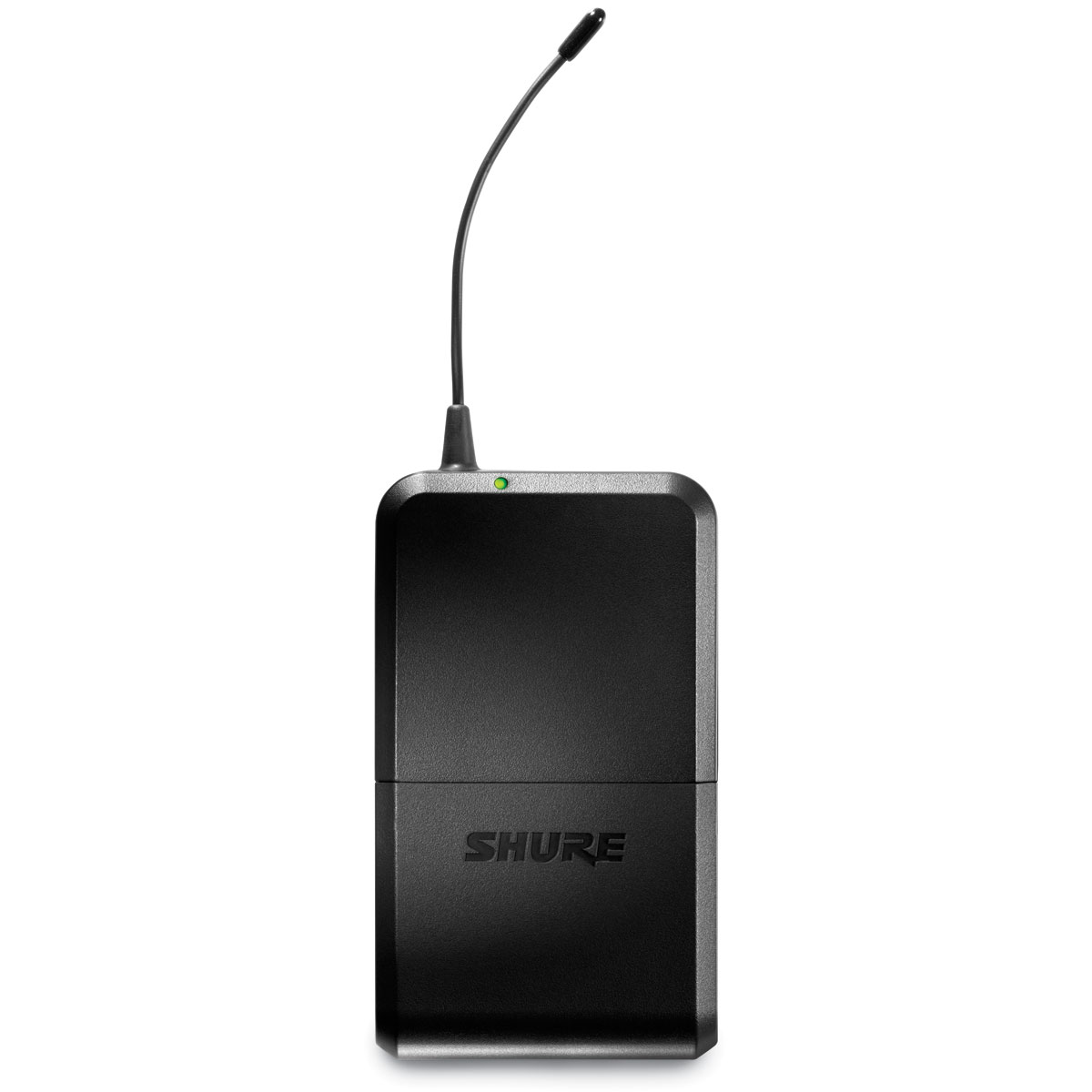 Поясной радиопередатчик UHF-диапазона, гнездо TA4F, переключатели Power и mute, система Diversity, регулировка усиления входного сигнала до +30 дБ, радиус действия 75 м, до 8 ч. работы.