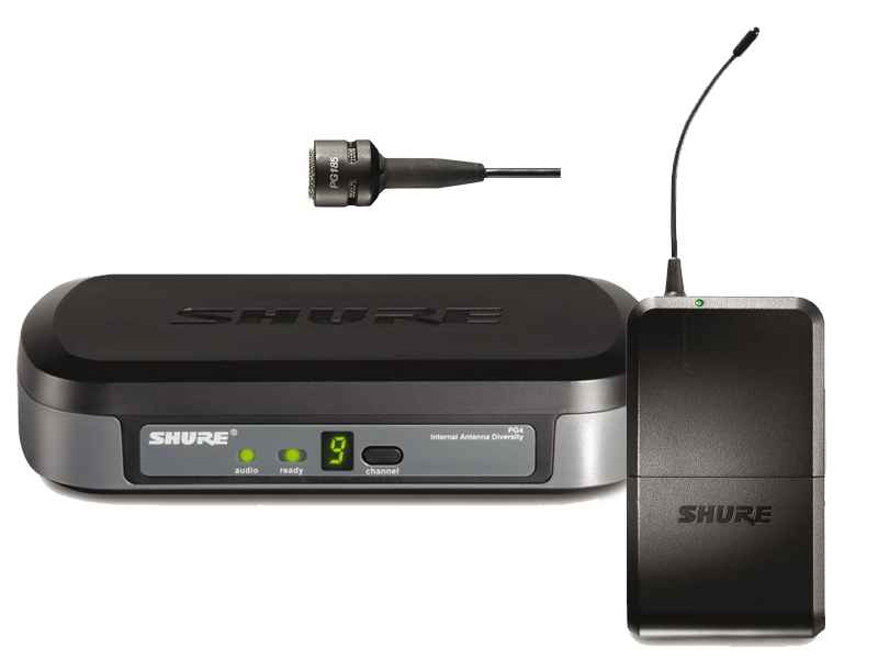 Одноканальная UHF-радиосистема, поясной передатчик, петличный микрофон PG185, система предиктивной диверсификации и компандирования аудиосигнала, радиус действия 75 м, до 8 ч. работы на батареи.