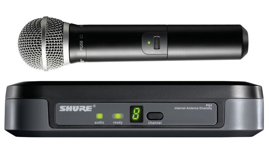 Одноканальная UHF-радиосистема, передатчик с динамическим микрофоном PG58, система предиктивной диверсификации и компандирования аудиосигнала, радиус действия 75 м, до 8 ч. работы на батареи.
