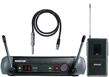 Диверситивная UHF радиосистема с авто синхронизацией частоты радиопередачи, поясной передатчик + инструментальный кабель 1/4 Jack - TA4F, радиус действия 100 м, время работы 8 часов.