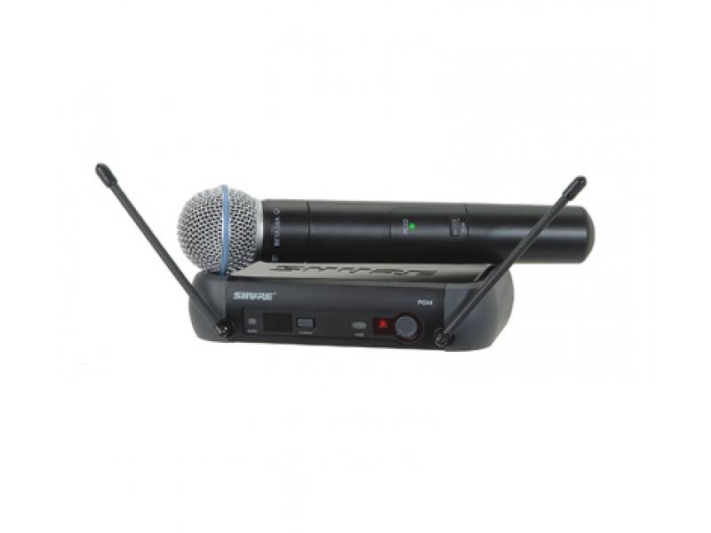 Диверситивная UHF радиосистема с авто синхронизацией частоты радиопередачи, ручной динамический радиомикрофон PGX2/BETA58, радиус действия 100 м, время работы 8 часов, авто подбор частоты.