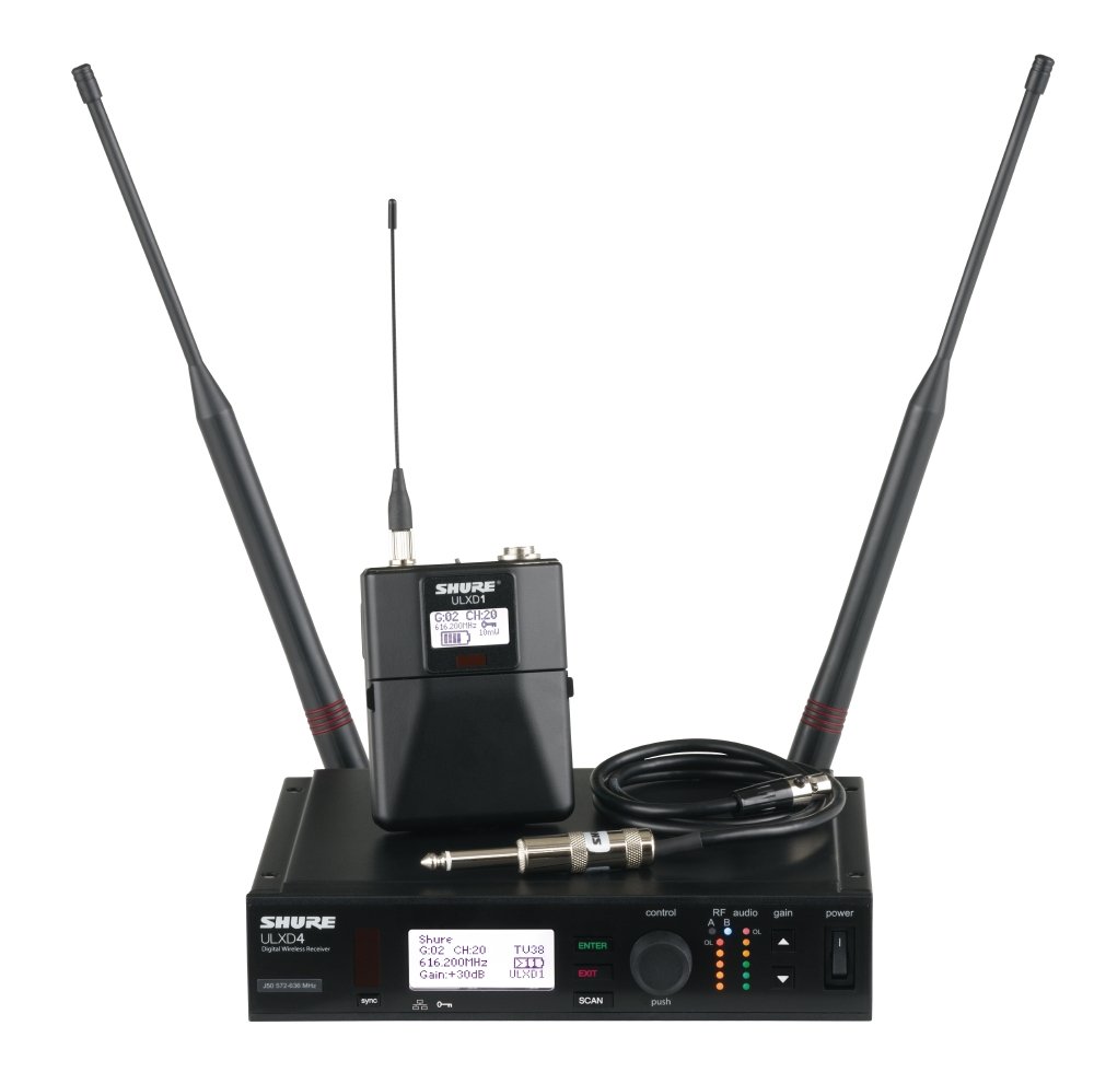 Цифровая UHF-радиосистема, диапазон 6 ГГц, 60 каналов, поясной передатчик ULXD1 инструментальный кабель 1/4 TS - TA4F, 256-битное кодирование AES, радиус действия 100 м, АКБ Li-ion до 12 часов непрерывной работы.