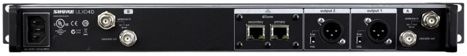 Shure ULX-D4D - цифровой двухканальный беспроводной приемник с высокой эффективностью для профессионального использования. Поддерживается технология цифрового предиктивного разнесения, а также 256-битный алгоритм шифрования AES для обеспечения безопасной беспроводной передачи данных.