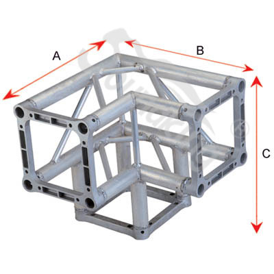 Прямоугольный алюминиевый уголок переходник, 3 направления под углом 90º, прочный высококачественный сплав ALSi, размеры 50 х 50 х 50 см, прямоугольная крепежная секция со стороной 290 мм, несущая труба Ø-50 мм, толщина стенки 2.0 мм, соединительные распорки Ø-20 мм, толщина стенки 2.0 мм, порошковая защитная покраска.