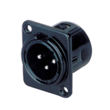 3-х контактное панельное гнездо XLR «папа» формфактора D с никелированными контактами, посадочные размеры 26×31 мм, посадочные габариты 19×24 мм, цинковый корпус.