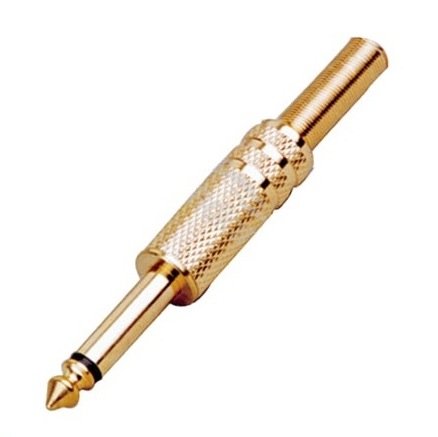 Стандартный небалансный 2-х контактный 1/4 (6.35 мм) TRS Jack, позолоченные контакты, золотистый корпус, пружина улавливатель, материал: цинк.
