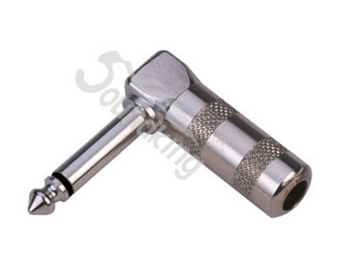 Стандартный угловой небалансный 2-х контактный 1/4 (6.35 мм) TRS Jack, никелированные контакты, хромированный цинковый корпус, без улавливателя.