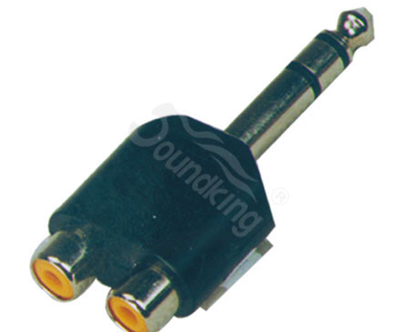 Переходник Y-образный стерео 6.35 мм (1/4) TRS Jack «папа» - 2 х RCA (тюльпан) «мама», по канальное распределение сигнала, никелированные контакты, пластиковый корпус.