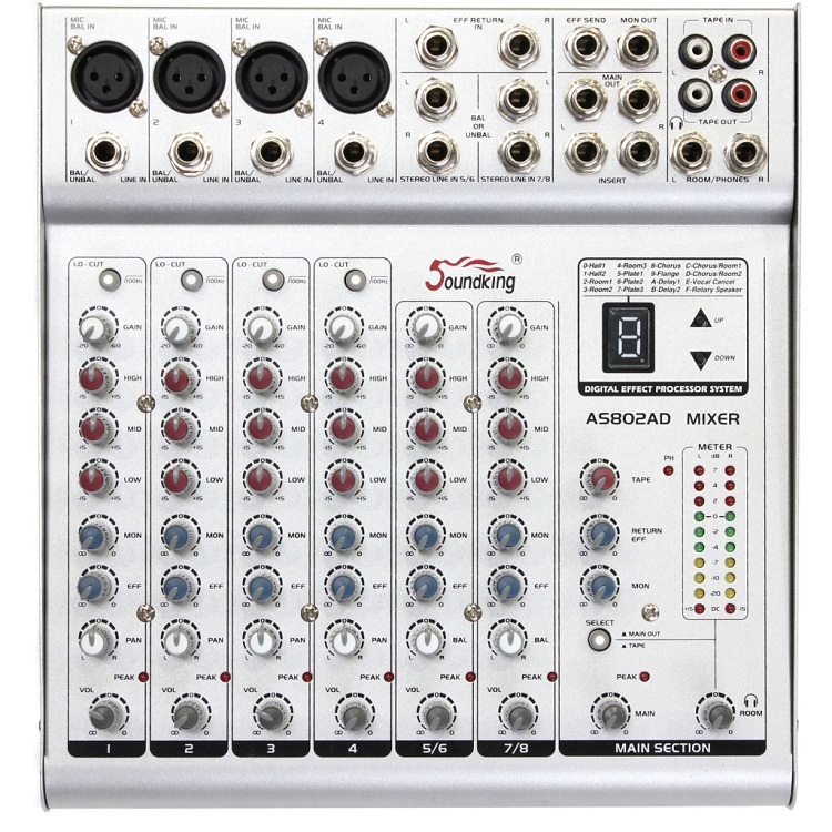 SoundKing SKAS802D – это компактный 8-канальный микшерный пульт c DSP процессором эффектов, продолжающий популярную линейку AS от компании SoundKing. Данная модель станет идеальной в самых различных вариантах музыкальных инсталляций. Отличное сочетание надежности и доступности делают эту модель прекрасным выбором для проведения камерных мероприятий, презентаций или использования в домашних студиях.