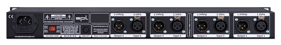 Возможно объединение управлением каждой из пар каналов (функция Link) для сохранения стабильности стереообраза. Процессор имеет 4 входа и 4 выхода (симметричные, бестрансформаторные, на разъемах XLR), переключатель отрыва звуковой земли от сети.