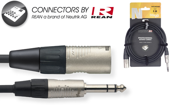 Коммутационный межблочный кабель с Y-разветвлением, коннекторы 2 х 6.35 мм TS Jack - 6.35 мм TRS Jack «папа», пластиковые коннекторы Stagg, диаметр кабеля: 4 мм, длина: 3 метра, цвет: черный.
