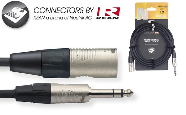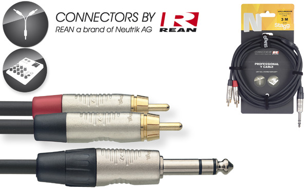 Коммутационный межблочный кабель с Y-разветвлением, коннекторы 2 х 6.35 мм TS Jack - 6.35 мм TRS Jack «папа», пластиковые коннекторы Stagg, диаметр кабеля: 6 мм, длина: 3 метра, цвет: черный.