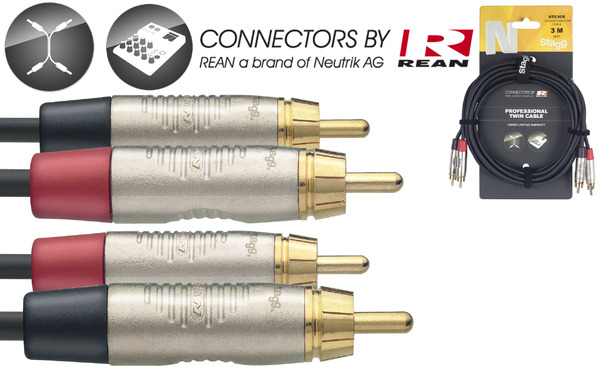 Сдвоенный коммутационный кабель, коннекторы 2x6.35 мм TS Jack - 2x6.35 мм TS Jack , металлические коннекторы Stagg, диаметр кабеля: 5 мм, длина: 10 метров, цвет: черный.
