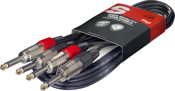 Сдвоенный коммутационный кабель, коннекторы 2x6.35 мм TS Jack - 2x6.35 мм TS Jack , металлические коннекторы Stagg, диаметр кабеля: 5 мм, длина: 6 метров, цвет: черный.