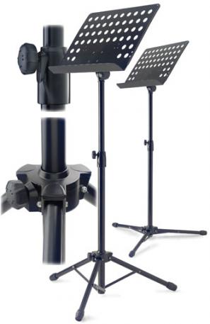 Оркестровый пюпитр с деревянным держателем для нот и складными стальными ножками, максимальная высота: 150 см, размеры: высота 38 см; ширина 55 см; глубина: 6 см.