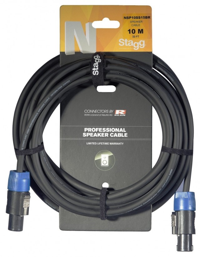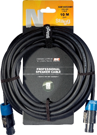 Силовой акустический кабель, коннекторы Rean SpeakOn 2-pin - SpeakOn 2-pin, кабель сечением: 2x1.5 мм² (16AWG), длина 10 метров, цвет:черный.