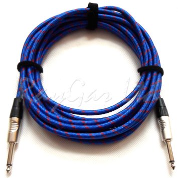 Гитарный/инструментальный коммутационный кабель в тканевой оплетке, 6.35 мм TS Jack - 6.35 мм TS Jack, металлические коннекторы Stagg, серия DELUXE, диаметр кабеля: 6 мм, длина: 6 метров, синий.