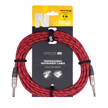 Гитарный/инструментальный коммутационный кабель в тканевой оплетке, 6.35 мм TS Jack - 6.35 мм TS Jack, металлические коннекторы Stagg, серия DELUXE, диаметр кабеля: 6 мм, длина: 6 метров, красный.