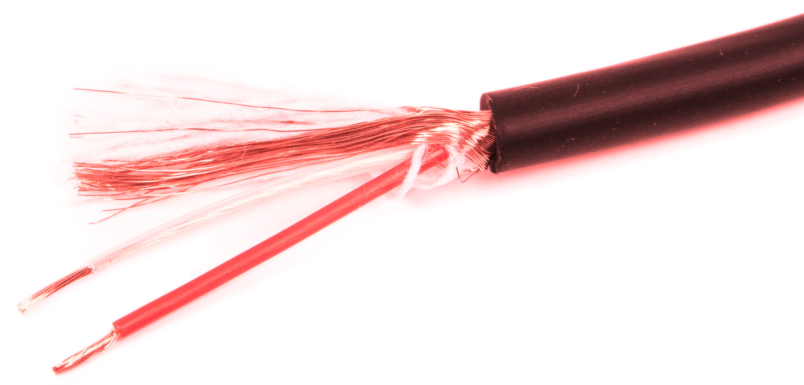 Симметричный микрофонный кабель, диаметр кабеля 6 мм, центральные жилы: медь, экран: медь, цвет: красный.