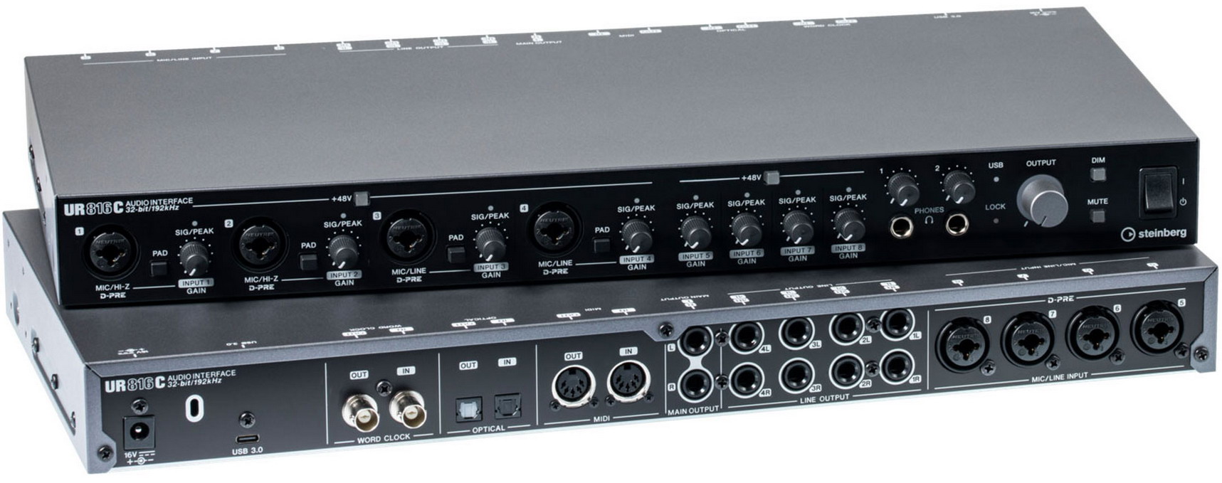 Steinberg UR816C самый продвинутый аудиоинтерфейс линейки, с разнообразием входов/выходов для создания мультитрековых записей. Модель характеризуется высококачественными микрофонными предусилителями D-PRE, профессиональными функциями, включая ADAT, Word Clock, цифровыми входами/выходами и переключателем mute/dim.