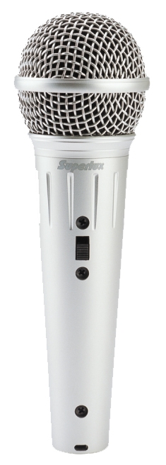Вокальный динамический микрофон с выключателем, направленность: суперкардиоида, АЧХ: 50 Гц-15 кГц, SPL 150 дБ, импеданс 500 Ω, чувствительность: -52 дБВ/Па (2.5 мВ), в комплекте кабель+держатель.