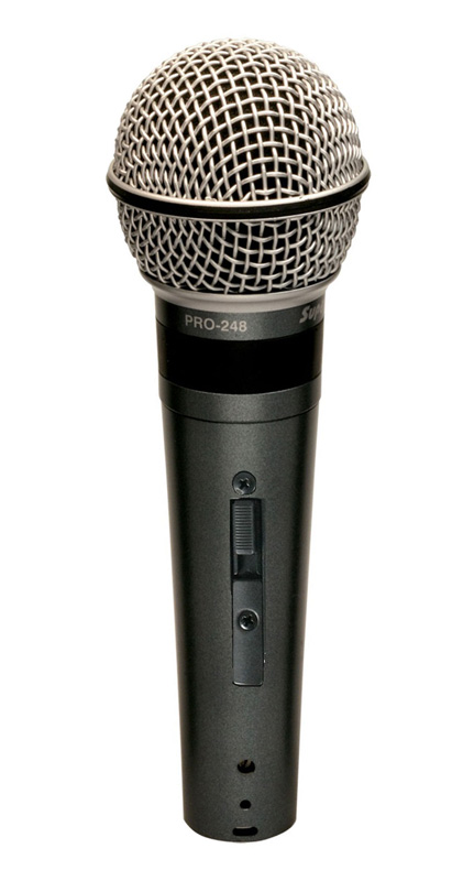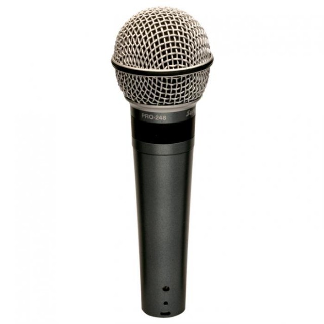Вокальный динамический микрофон с выключателем, направленность: суперкардиоида, АЧХ: 50 Гц-16 кГц, SPL 134 дБ, импеданс 250 Ω, чувствительность: -56 дБВ/Па (1.6 мВ), в комплекте держатель.