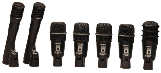 Комплект из 7-микрофонов для подзвучивания ударной установки, 1хPRA218A для бас-барабана,4хPRA228A для тома/малого барабана, 2хPRA268A для подвучивания тарелок/оверхед, пластиковый кейс.