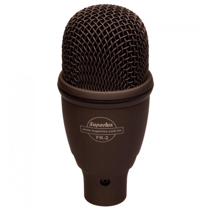 Superlux FK2 - динамический инструментальный микрофон с суперкардиоидной характеристикой направленности, устойчив к обратной связи. Микрофон подходит для озвучивания бас-барабана или снятия звука с басового комбоусилителя.