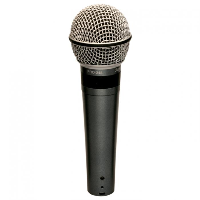 Superlux PRO-248 — вокальный динамический микрофон с суперкардиоидной диаграммой направленности. Оборудован ударопрочной металлической решеткой, алюминиевой диафрагмой, сверхпрочным корпусом.