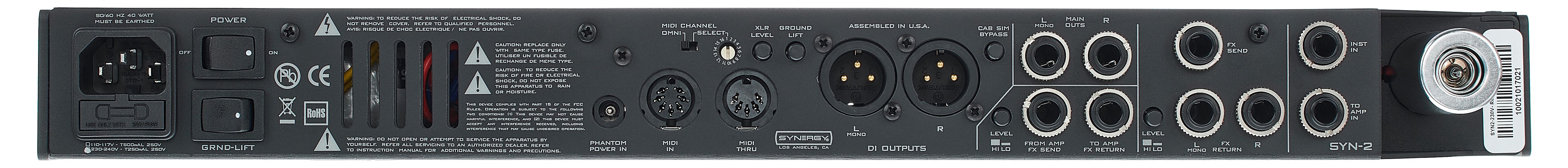 Можливо ви запитаєте: "Але у мого підсилювача немає послідовної петлі ефектів... чи можу я використовувати його з Syn-2?" Відповідь - ТАК! У цьому випадку ви зможете підключити 1/4" вихід до входу вашого підсилювача. Звичайно, в цьому варіанті ви зможете використовувати лише 4 канали модуля Synergy та не зможете обхідати преамп вашого підсилювача... але ви все ж може отримати чотири фірмові канали Synergy!