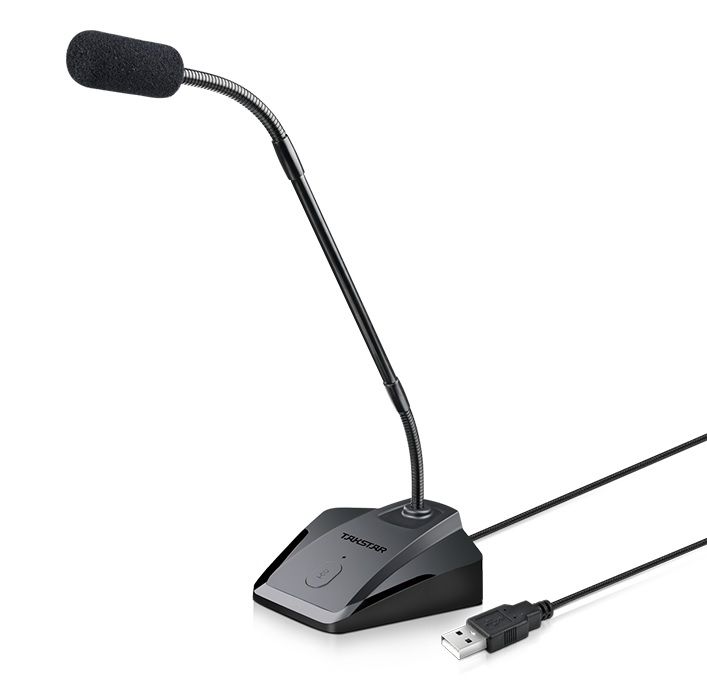 Конференционный USB-микрофон на гусиной шее, 48 кГц/24 бит, капсюль: конденсаторный (кардиоида), АЧХ 80 Гц-18 кГц, 3.5 мм выход на наушники (20 мВт), регулятор громкости, совместимость Windows, Mac OS и Kirin.