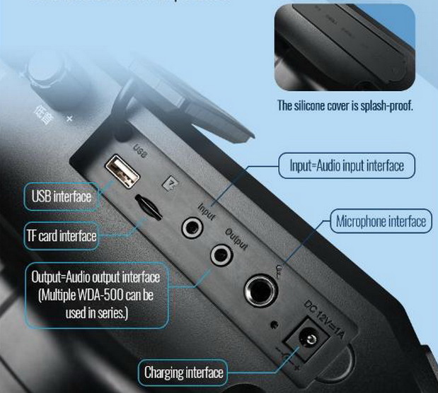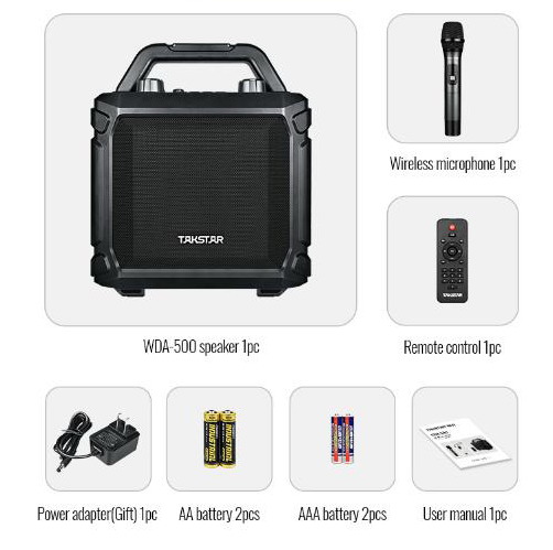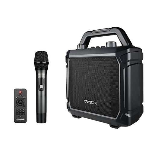 Активна АС, вбудований медіаплеєр USB/TF card, FM радіо, модуль Bluetooth, 1-ручний UHF радіомікрофон, динамік 5.25", АЧХ 60 Гц-16 кГц, вхід: 6.3 мм + 3.5 мм , вихід 3.5 мм Jack для лінкування АС, потужність: Peak 40 Вт, пульт ДК, автономність АКБ 5 год./4 год. зарядка, розмір 285х151х338 мм, вага 2.9 кг.
