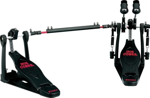 Двойная педаль "кардан" с цепью серии Iron Cobra в кейсе. Эксцентрик Duo Glide с приводами Power и Roller Glide, Speedo-Ring/Para-Clamp, регулировка натяжения пружин, настройка угла удара колотушки.