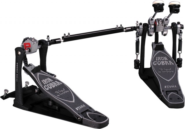 Профессиональная двойная педаль "кардан" серии Iron Cobra Power Glide с приводом на двойной цепи и кейсом в комплекте.