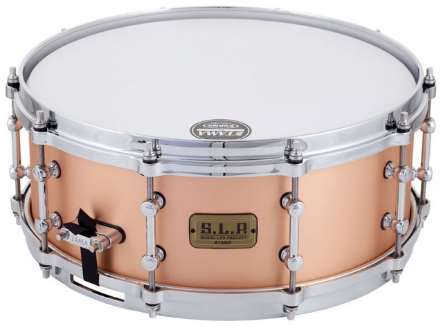Малый барабан 14x5.5 серии SLP, материал бронза 1.2 мм, фурнитура с латунными лагами, обручи на 10 отверстий, подструнник: MCS70A, подструнник: MS20SN14C, пластик: верхний Evans G1/Evans Hazy 300.