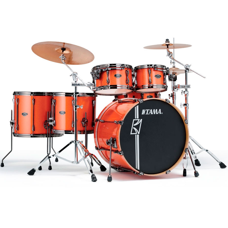 Ударная установка из 5-барабанов серии Superstar Hyper-Drive Maple, бочка 18х22, том-томы 8х10 и 9х12, напольный том 16x16, малый 5.5х14, материал: клен, цвет Bright Orange Sparkle.