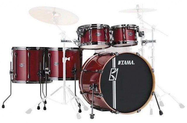 Ударная установка из 5-барабанов серии Superstar Hyper-Drive, бочка 22х18, томы 10х6.5/12х7, флор-том 16х14 и 14x12, материал клен, укороченные томы Hyper-Drive, фурнитура черный никель, цвет темно-красный.