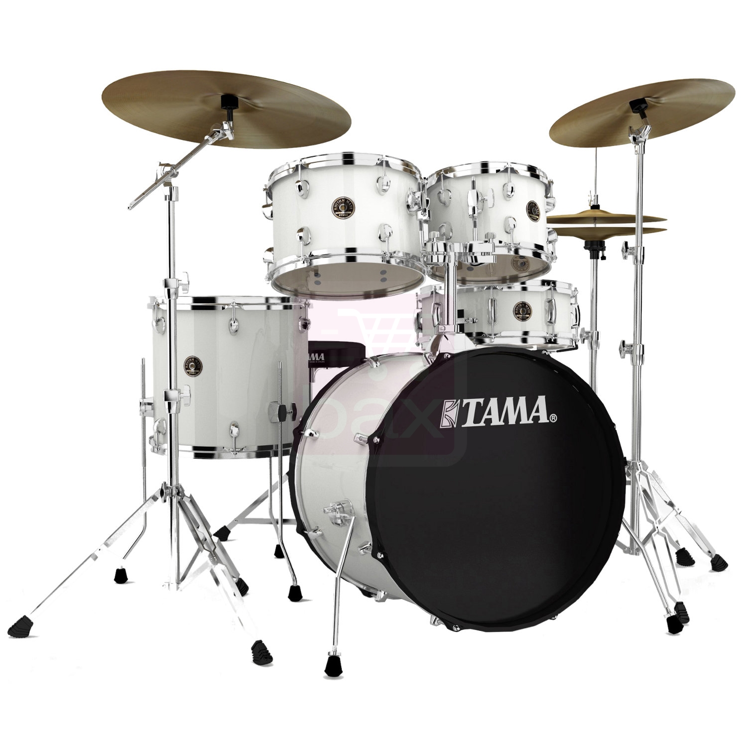 Ударная установка из 5-ти барабанов серии Rhytm Mate, бочка 16x20, том-томы 7x10 и 8x12, флор том 13х14, малый 5х14, стойки для тарелок, подставка для малого, двойной том-холдер, педаль для бочки, тарелки, цвет Mate White.
