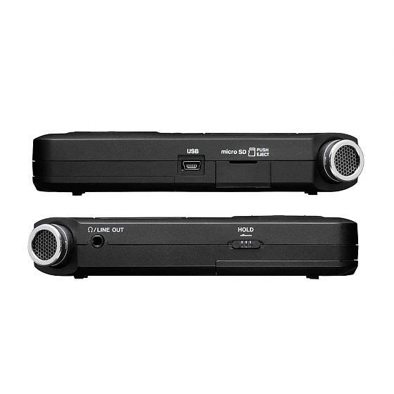 Портативный цифровой рекордер+USB аудиоинтерфейс 2х2, АЦ/ЦА 24 бит/96 кГц, носитель microSD, microSDHC или microSDXC до 128 Гб, 2-канала, 2 конденсаторных всенаправленных микрофона, АЧХ 20 Гц до 20 кГц, стерео 3.5 мм Mini Jack вход, стерео 3.5 мм Mini Jack выход, НЧ фильтр 40/80/120 Гц, автономность до 17 часов, питание 2×AA/USB порт.