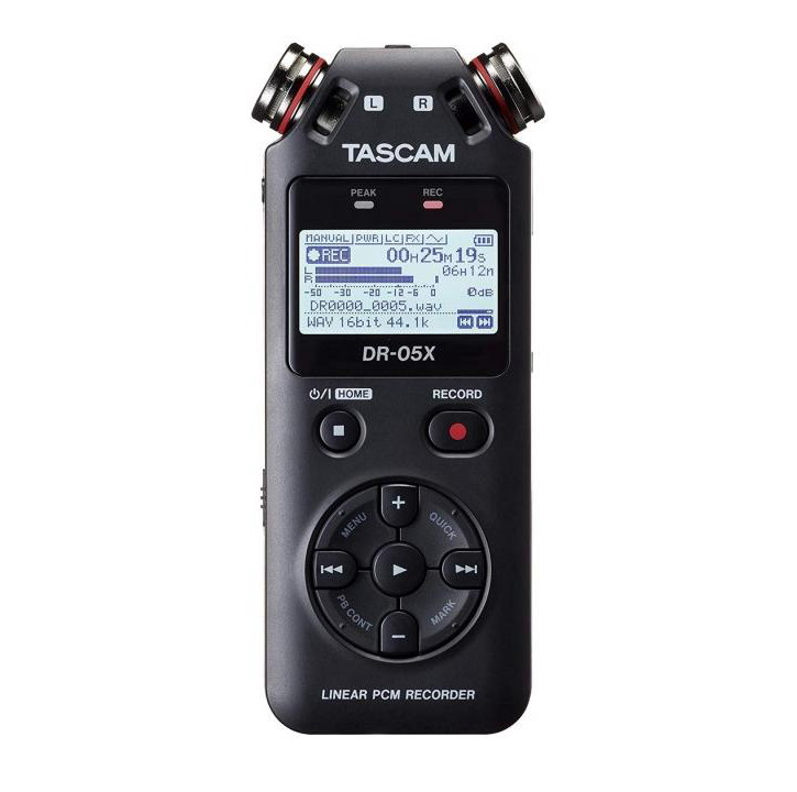 Tascam DR-05X – это портативный, высококачественный стерео рекордер в форматах MP3 или WAV, который использует карты памяти формата microSD, microSDHC или microSDXC и поддерживает преобразование до 96 кГц/24 бит. Пара встроенных всенаправленных микрофонов расположены в конфигурации A/B и способны выдерживать давление до 125 дБ с высоким уровнем чувствительности. Рекордер также имеет стерео вход на разъеме mini-jack для подключения внешнего микрофона или линейного источника сигнала.