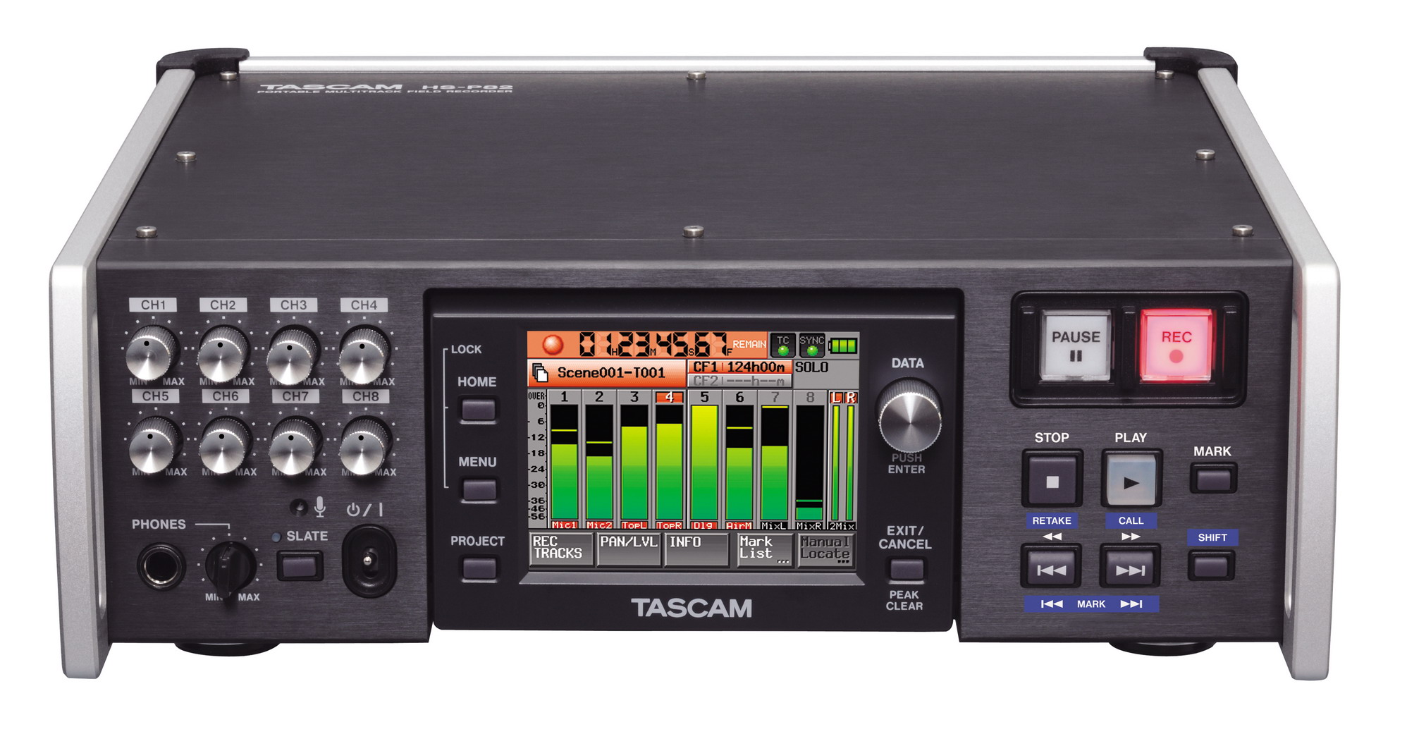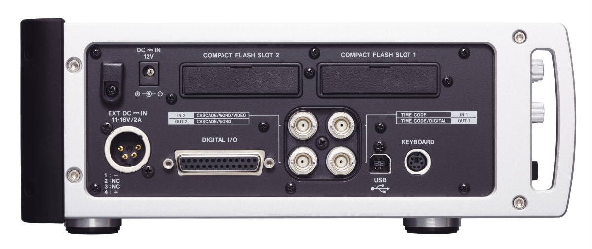 Профессиональный 8-канальный рекордер, 24 бит/192 кГц, 8 входов XLR, 2 карты CompactFlash, раздельное питание +48V, 8 вх./вых. AES/EBU (DB-25), BNC вх./вых. SMPTE timecode, BNC вх./вых. Video/Word Clock/Cascade, лимитер, фаза 180º, НЧ-фильтр, USB 2.0.