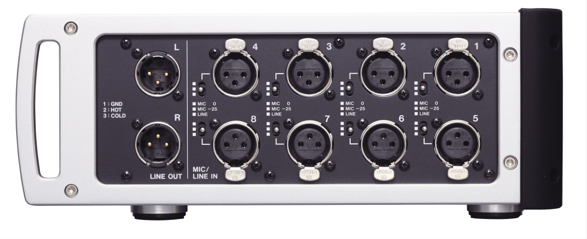 - 8 микрофонных предусилителей и АЦП, каждый из входов выполнен на разъемах XLR