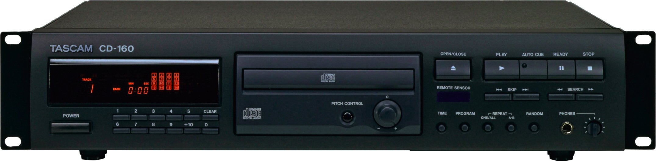 Tascam CD-160 - полнофункциональный CD-проигрыватель, предназначенный для коммерческих инсталляционных работ. Широкие возможности, а также жесткие рамки разработки этого проигрывателя делают его надежным и многофункциональным. Устройство чтения компакт-дисков CD-160 позволяет работать как с CD-RW дисками, так и CD дисками и CD-R матрицами. Имеется возможность непосредственного подключения по цифровым каналам к устройствами цифровой записи при помощи выходных цифровых коаксиальных разъемов.