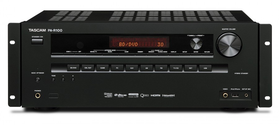 Tascam PA-R100 - профессиональный AV-ресивер с функцией 5.1 канального Surround звучания. Ресивер производит до 80 Вт на канал, устройство включает в себя семь входов HDMI с поддержкой 3D-контента, HD-аудио и высококлассные видео на с технологией 4К Qdeo по допуску Marvell. Ресивер также поддерживает Dolby TrueHD и DTS-HD Master Audio форматы. PA-R100 позволяет выбрать между несколькими зонами, кроме того, с помощью встроенного Wi-Fi и подключения Ethernet, можно выбрать один из источников, включая интернет-радио или потоковое сетевое вещание из iCloud (или других облачных хранилищ). Система поддерживает прямое воспроизведения с iPod/iPhone/iPad (в том числе iPhone 6) и традиционных аналоговых цифровых устройств вывода аудио.