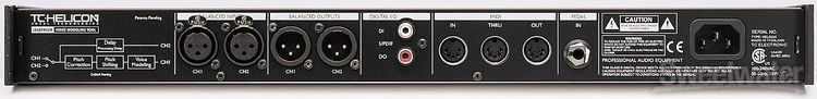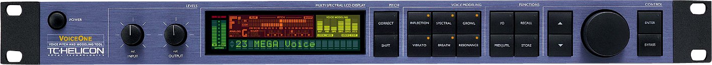 TC-Helicon VoiceOne - это вокальный процессор, который использует технологии моделирования голоса, впервые примененной в устройствах VoicePrism Plus и VoiceCraft, с алгоритмами изменения формант, изменения пола, добавления дыхания, песка, хрипа, резонанса и вибрато. Кроме того, возможны автоматическая или ручная коррекция высоты тона (с управлением по MIDI или пресетными/пользовательскими ладами), автоматическое или ручное увеличение/уменьшение продолжительности фразы (диапазон 500 мс), удвоение голоса, преобразование высоты тона в MIDI.