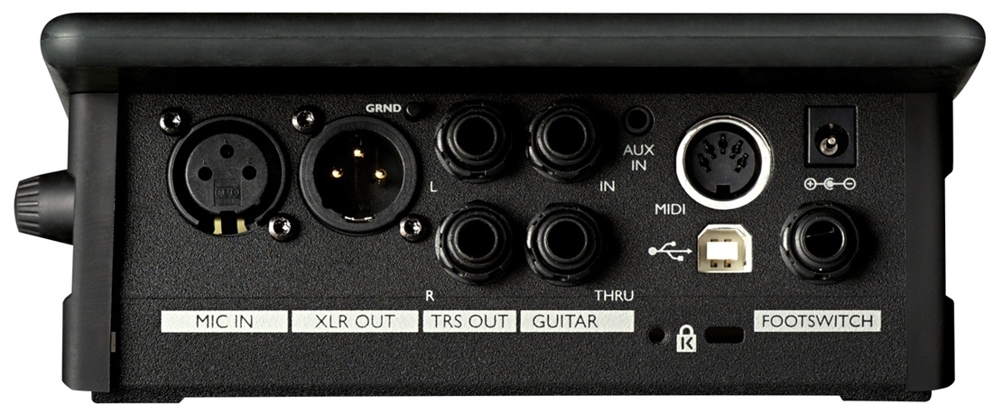 Вокальный процессор эффектов с сенсорным дисплеем, вход Aux для плеера, вход MIDI, выход для наушников с регулировкой уровня, вход/выход для гитары, порт USB.