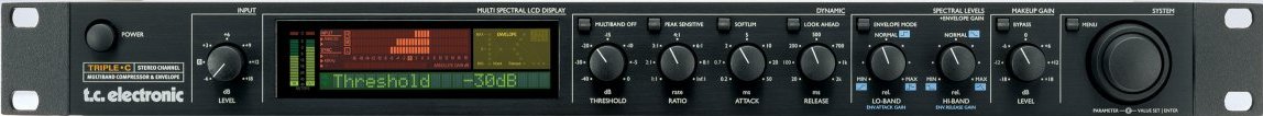 Особенность версии Triple C Stereo Channel — это возможность работы как в стерео - (динамическая обработка левого и правого каналов, функция Side-Cain недоступна), так и в монорежиме (полная функциональная идентичность версии Single Channel, включая Side-Chain).