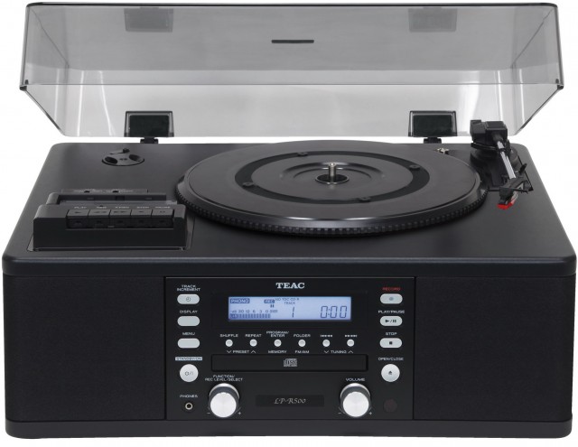 Teac LP-R500 - это современный комплекс в ретро-стиле включающий в себя проигрыватель виниловых грампластинок с нерегулируемым тонармом и функцией автостопа/автовозврата (доступны скорости в 33⅓, 45 и 78 об/мин), CD-рекордер, кассетная дека, AM/FM-тюнер и стереоусилитель с двумя встроенными динамиками.