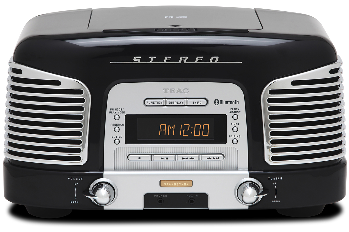 Винтажный AM/FM радиоприемник с памятью на 10 AM и 10 FM станций, поддержка Bluetooth 3.0, 2.1-канальная аудиосистема 20 Вт, CD-проигрыватель, часы, пульт ДУ, LCD дисплей.
